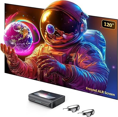 Ever since the introduction of the “Laser TV” projector category over twelve years ago, ultra short throw projectors and UST ALR (Ambient Light Rejecting) projection screens intended for do-it-yourself in-home setup and installation, with the UST projector placed near a wall, sitting on or in a stand or cabinet or even directly on the floor, have become a feasible, desirable, popular, and ever more affordable SUPER-SIZED big screen TV alternative. Most of the best 4K ultra short throw projectors are capable of projecting up to a 150″ diagonal image. The 5000 ANSI lumen Hisense L9Q pictured below is now considered the king of UST projectors, capable of projecting anywhere from an 80″ to a 200″ diagonal image, and it’s only six grand!